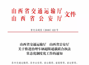【治超看山西】山西省推進(jìn)治理車輛超限超載聯(lián)合執(zhí)法常態(tài)化制度化工作的通知