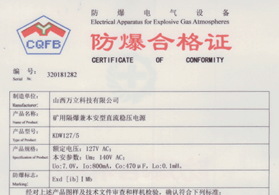 礦用隔爆電源防爆合格證
